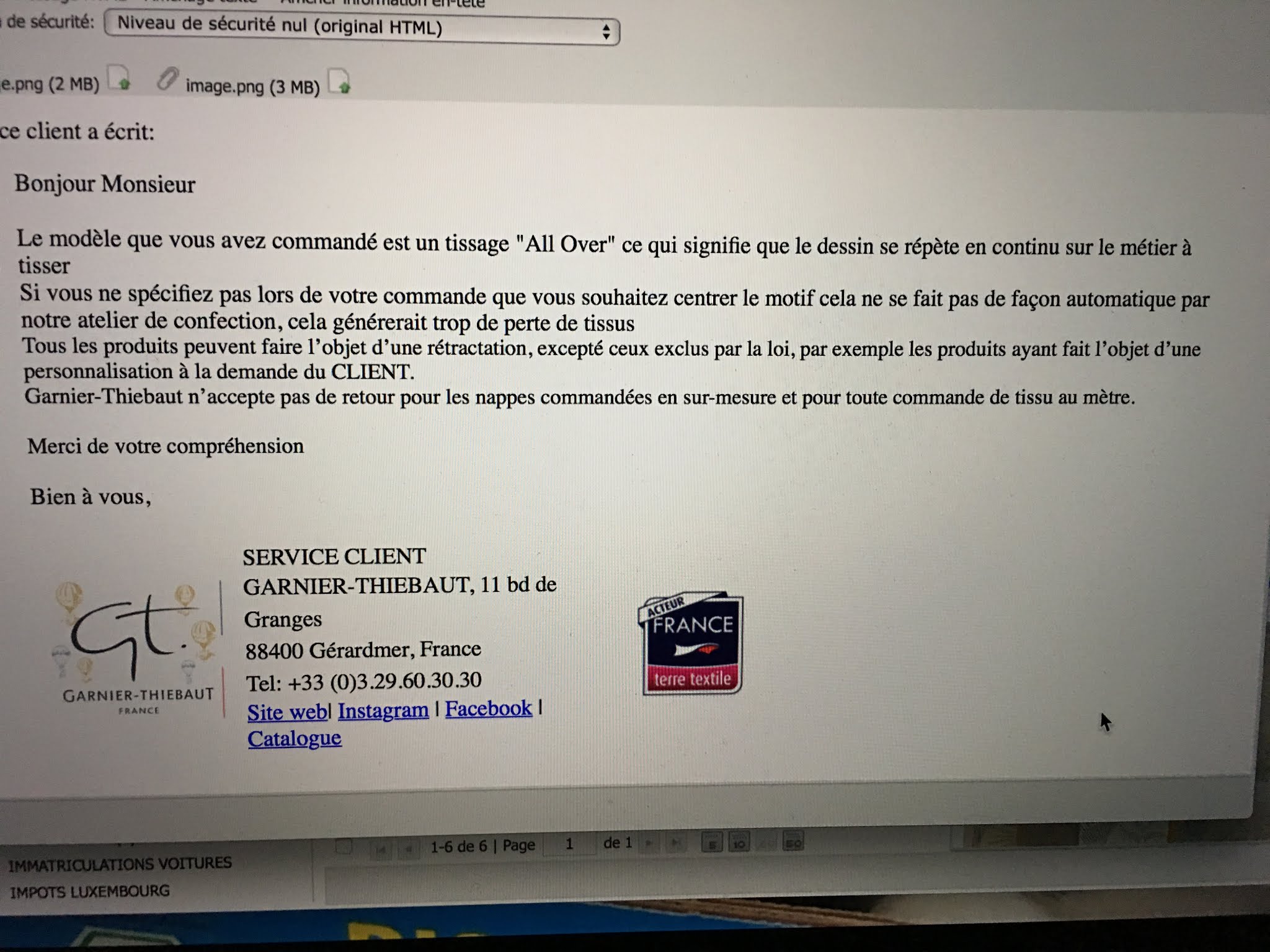 La confection est une catastrophe et le SAV encore pire ... L'entreprise coupe les nappes de façon anarchique de manière à éviter les pertes de tissus au détriment de la symétrie du dessin. C'est au client à dire à l'entreprise comment découper la nappe !!! Jugez par vous-même (e-mail + photos attachées) Résultat : Je me retrouve avec une nappe à plus de 250 EUR non présentable, non échangeable, parce que je n'ai pas précisé à l'atelier de confection comment couper la nappe en largeur. Le SAV (Ingrid) me rappelle à plusieurs reprises au téléphone que l'atelier confectionne depuis 185 ans et qu'elle fournit les plus grands palaces de la planète, refuse de mettre en relation avec l'atelier de confection, refuse de reconnaître l'erreur de coupe, et refuse que je retourne le produit mal confectionné à l'équipe dirigeante afin qu'ils se rendent compte du mauvais travail exécuté sur la nappe. Quand je vois la qualité exceptionnelle des tissus Garnier-Thiebaut, je ne peux m'empêcher de penser : comment peut-on avoir si un service client aussi déplorable et un atelier de confection qui n'est pas fichu de couper une nappe avec du bon sens ... Par la suite, le PDG de la société a été réactif. Il a pris soin de me contacter personnellement pour solutionner le problème. Une nouvelle nappe m'a été confectionnée et correctement cette fois ci. Les frais de retour du produit non conforme (10,20 EUR pour l'envoi + 3,50 EUR pour l'emballage) sont restés à ma charge.
